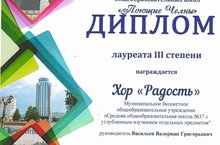Поздравляем хор "Радость" МБОУ "СОШ №37 с углубленным изучением отдельных предметов" занявшие 3 место во 2 городском конкурсе-фестивале хоровой музыки среди учащихся образовательных школ "Поющие Челны". Руководитель Заслуженный работник культуры Республики Татарстан Васильев В.Г.