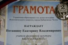 В городском дворце творчества детей и молодежи №1 прошли соревнования по настольному теннису в рамках Спартакиады среди работников образовательных учреждений города Набережные Челны. По Автозаводскому району 2 место в личном первенстве заняла учительница физической культуры – Поташина Екатерина Владимировна. Поздравляем, Екатерина Владимировна!
