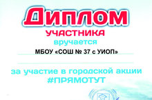 Учащиеся школы во главе со спикером Казанцевым Виктором активно приняли участие в городской акции "Прямо тут" и были поощрены дипломом за подписью начальника управления образования г.набережные Челны В.Х.Харисова. Благодарим учащихся за их активную работу и достигнутые успехи!