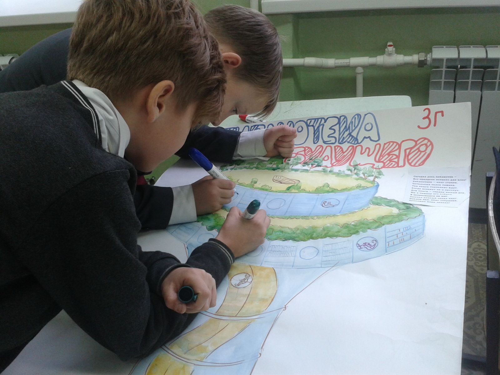 В рамках Международного месячника школьных библиотек проходят конкурс плакатов и рисунков. Учащиеся 3Гкласcа (классный руководитель Логачева Елена Сергеевна) сделали плакат "Библиотека будущего" и подарили книги в школьную библиотеку.