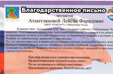 В вашем лице Ассоциация ТОС Автозаводского района г. Набережные Челны Выражает благодарность коллективу преподавателей школы, учащимся и их родителям за преданность лучшим идеалам патриотизма, за бережное отношение к истории нашей Родины, ее героическому прошлому и настоящему. То, что трудом взрослых и ваших воспитанников сегодня увековечена Память воина, бывшего ученика Вашей школы, погибшего на полях сражений Специальной военной операции на Донбассе, является примером для всех учебных заведений и предприятий города и республики. Как мир меняется в горящем преломлении, на вызов времени трудней искать ответ, но не затерянное в лайках поколение - мальчишки и девчонки вашей школы, нет! Любовь к Отечеству к России ген наследственный, в дни испытаний он сильнее во сто крат. Примите благодарность в этот час торжественный за воспитание достойных Родины ребят. Как к сердцу приняли и горячо откликнулись на то, чтоб память о герое сохранить, не к папе с мамой за деньгами ринулись,своим трудом сумели средства раздобыть. Для Ярмарки хватило солидарности, ассортимент продаж приятно удивлял. Творить добро - дороже благодарности. На Вечный Пост Герой России встал. Встречаться будет взглядом он с входящими, мальчишек мужеству и стойкости учить,чтоб в жизнь уйти людьми им настоящими, и долго, счастливо, под мирным небом жить...