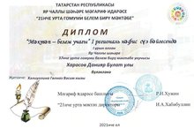 Ученик 5 О класса Харасов Данияр (Руководитель Гульназ Васимовна) занял 1 место в I региональном конкурсе стихотворений "Мәктәп - белем учагы". Администрация школы выражает Вам глубокую признательность за ваше профессиональное мастерство, педагогический талант, целеустремленность и кропотливый труд в воспитании и обучении подрастающего поколения.