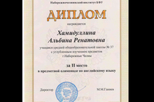 Поздравляем учащихся 11б класса Хамидуллину Альбину с победой (2-е место), Покрашенко Никиту с выходом в призёры в предметной олимпиаде по английскому языку, организованной Набережночелнинским филиалом КФУ. Выражаем благодарность за подготовку к олимпиаде учителю английского языка Козловой Ларисе Анатольевне. Желаем успехов в изучении английского языка!!!