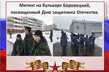 Митинг на бульваре Боровецкий, посвященный Дню защитника Отечества.В нем приняли участие учащиеся 1-5 классов.