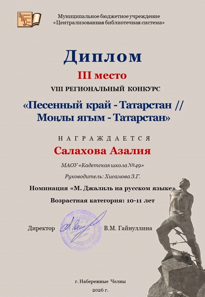 муниципальное автономное общеобразовательное учреждение города Набережные Челны «Кадетская школа №49»