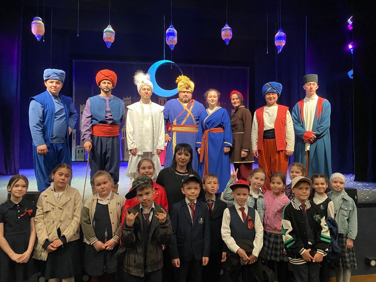 Опубликовано: 22.04.202522 апрель көнне, Тукай атналыгы кысаларында, Аяз Гыйләҗев исемендәге Чаллы татар дәүләт драма театрында укучыларыбыз белән атаклы Каюм Насыйринең «Әбүгалисина» әсәре буенча куелган күңелле спектакль карадык. Сюжеты болайрак. Тыныч кына яшәп яткан шәһәргә акыл иясе Әбүгалисина килеп төшкәч, хикмәтләр башлана да инде! Ярлы егет Хәлвәфрүшнең тормышы үзгәрә дә куя. Дөньяны танып белү сере һәм саф мәхәббәтнең көче бар авырлыкны җиңәргә ярдәм итә. Төп рольдә талантлы, артист Рәзил Фәхретдинов уйный. Барлык артистлар да үзләренә бирелгән рольләрне бик оста итеп уйнадылар. Укучыларга спектакль бик ошады.