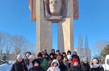 Учащиеся 7Б класса в сквере им. М.Джалиля на церемонию возложения цветов, посвященную Дню рождения М.Джалиля.