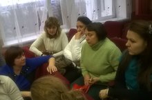На фото мы видим происходит бурное обсуждение совместного проекта с педагогическим коллективом школы №32.