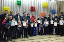 В конце мероприятия в актовом зале папам и юным участникам вручили грамоты , памятные подарки.