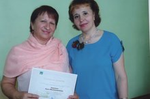 Шәһәркүләм музейлар бәйгеләрендә катнашу. Рәсемдә Мәгариф идарәсенең баш белгече - Касымова Рәхимә Равилевна һәм музей җитәкчесе - Ашрапова А.М., 2014 ел.