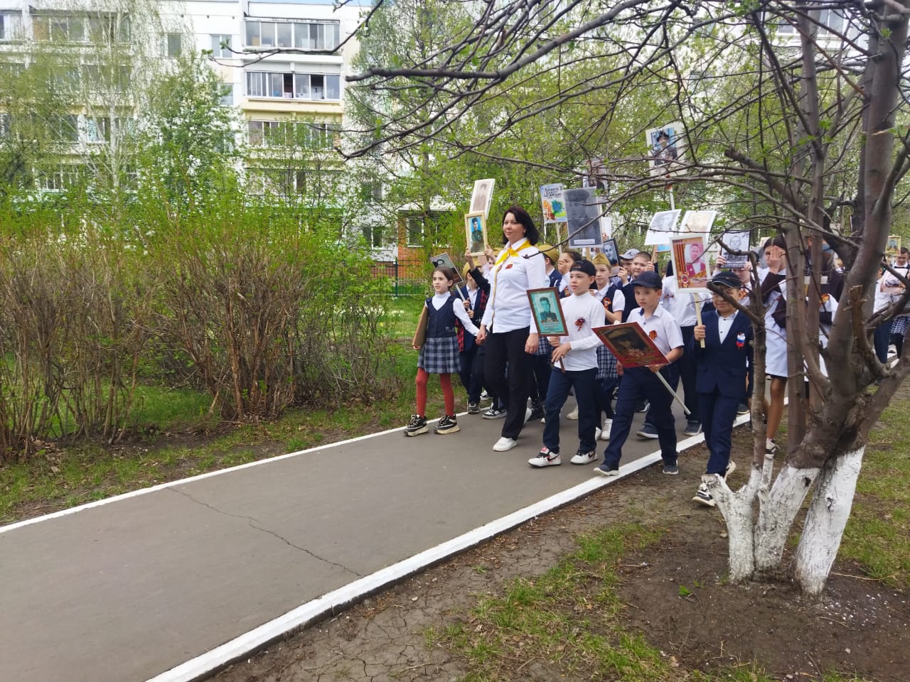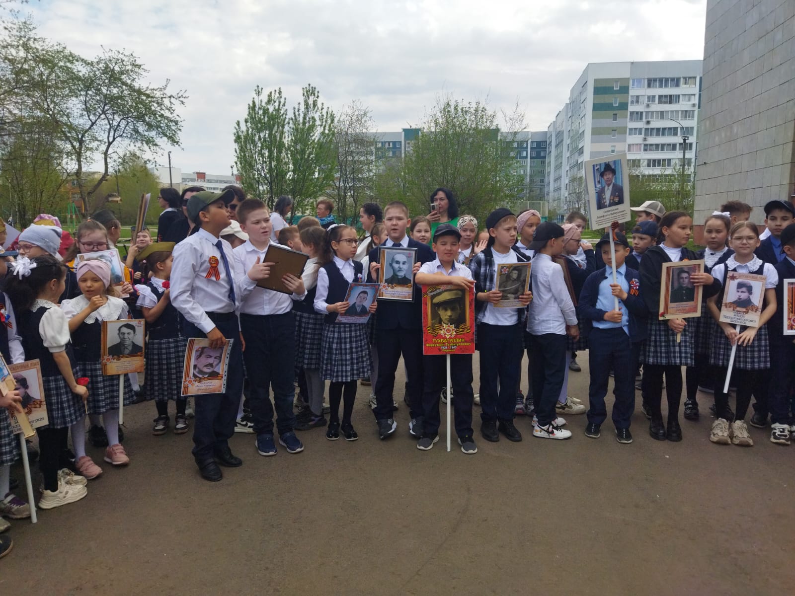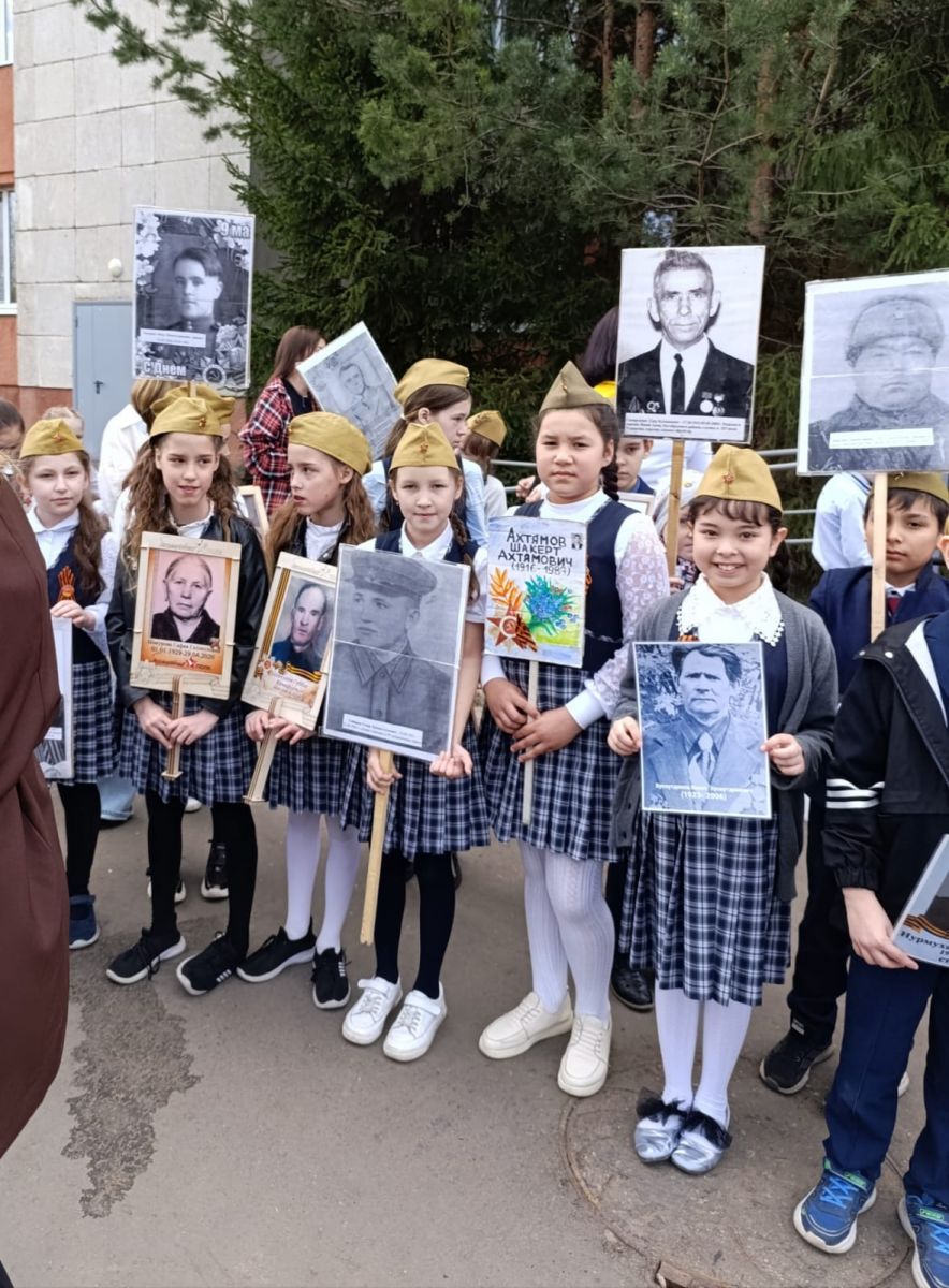 Советник директора по воспитанию Алина Маликова совместно с педагогом-организатором Айгуль Нуруллиной провели акцию «Бессмертный полк» 24 апреля 2025 года на территории нашей школы.