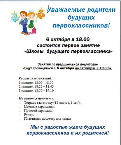 «Школа будущего первоклассника» 03.10.2017