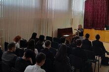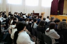 Мәктәпкә КамТЭКта укучы студентлар килде. Алар 9 нчы сыйныф укучыларына колледж турында мәгълүмат бирделәр, укырга керү турында сөйләделәр. -