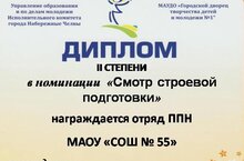 В городе прошел конкурс среди отрядов профилактики правонарушений образовательных организаций. Отряд ППН нашей школы получил Диплом 2 степени в номинаци “Смотр строевой подготовки”. Поздравляем наш отряд ППН, учащихся 8 Б класса и классного руководителя Валееву Ф.Г. с победой.