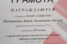 Учащиеся 5 В класса Надыршина Диана и Зиганшина Айсылу приняли участие в городском конкурсе «Юный изобретатель» и стали призерами. Им вручили грамоту за 3 место. Подготовила их к конкурсу учитель русского языка и литературы Султанова Гузель Мирзануровна. Поздравляем наших победителей.