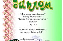 Татар теле һәм әдәбияты укытучысы Яковлева Гулнур Фатих кызы җитәкчелегендә мәктәп укучылары “Мин татарча сөйләшәм” исемле шәһәр программасында катнаштылар. Нәтиҗә: 1 нче дәрәҗәле диплом. Җиңүчеләрне тәбрик итәбез. -