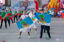 С портретами, флагами прошлых времён прошли шествием от площади Азатлык учащиеся школы и родители. Вечная память всем, кто не вернулся!