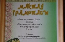 Татар теле укытучылары Каюмова Р. Н, Савельева В. А. Һәм мәктәп укучылары “Мин татарчва сөйләшәм” шәһәр программасында актив катнашып, 2 урынга лаек булдылар. Тәбриклибез! Әфәрин!