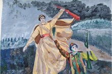 В школе прошла выставка лучших рисунков, посвящённых победе в Великой Отечественной войне.