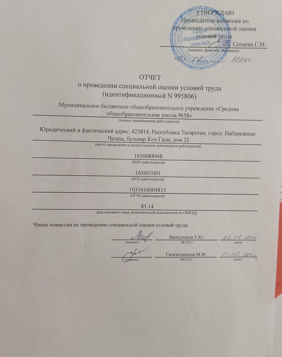 - Отчет о проведении специальной оценки условий труда от 01.08.2024