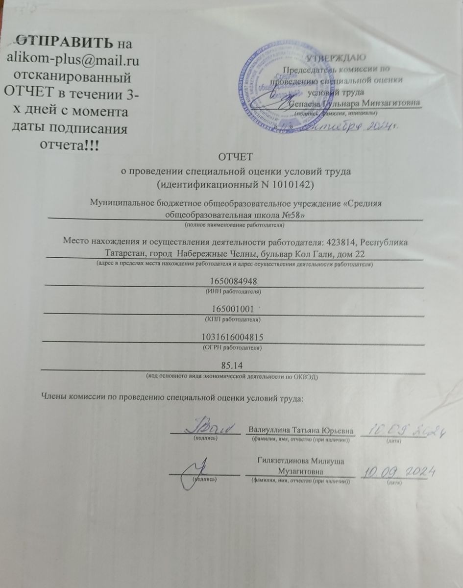 - Отчет о проведении специальной оценки условий труда от 10.09.2024