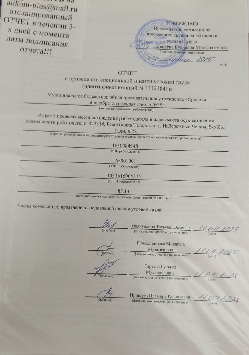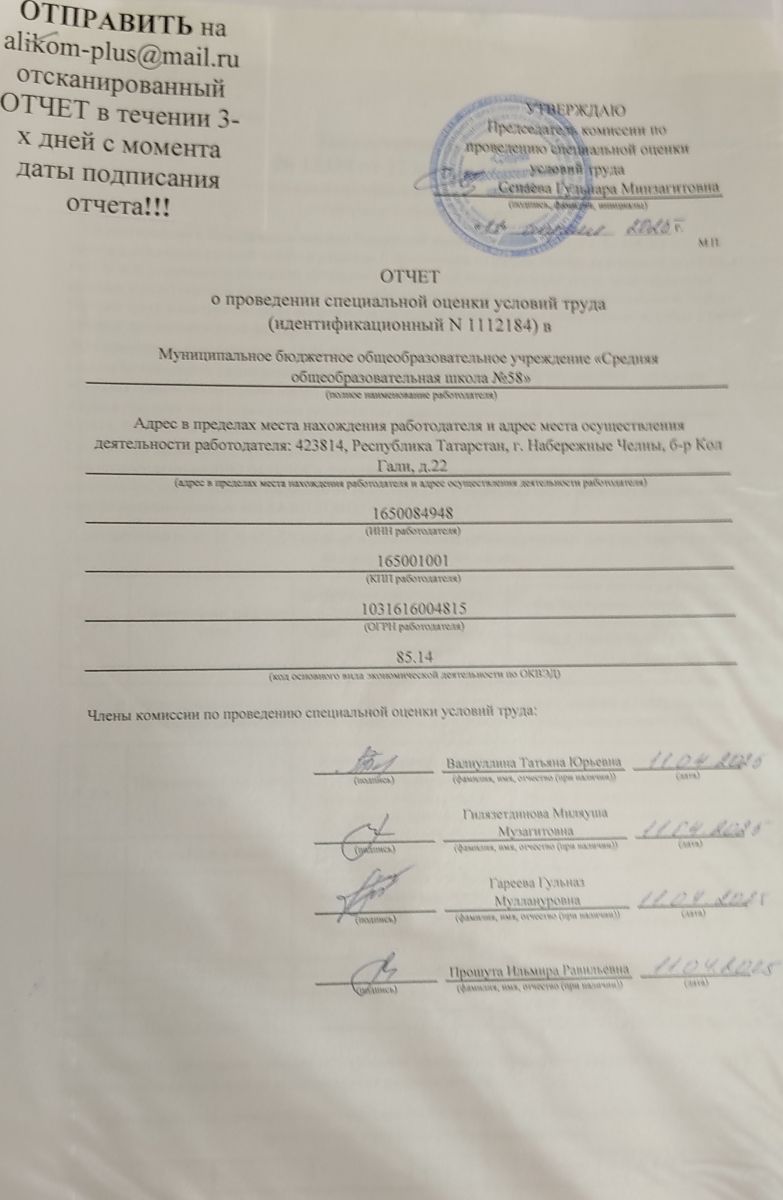 - Отчет о проведении специальной оценки условий труда от 11.04.2025