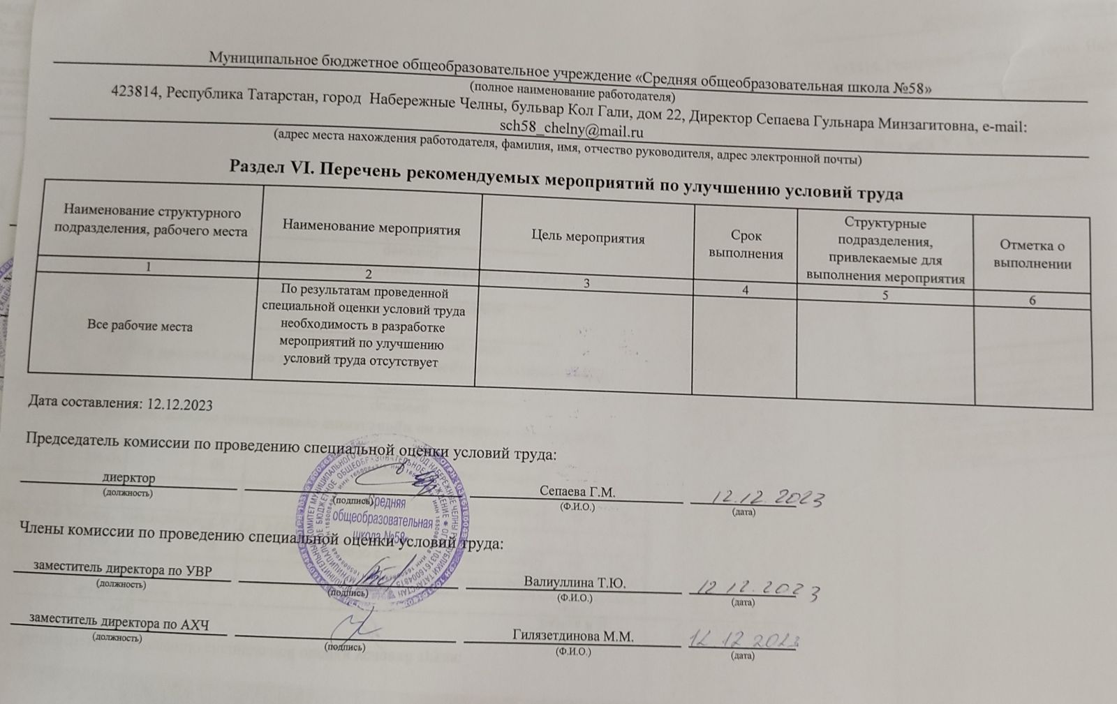 - Отчет о проведении специальной оценки условий труда от 12.12.2023