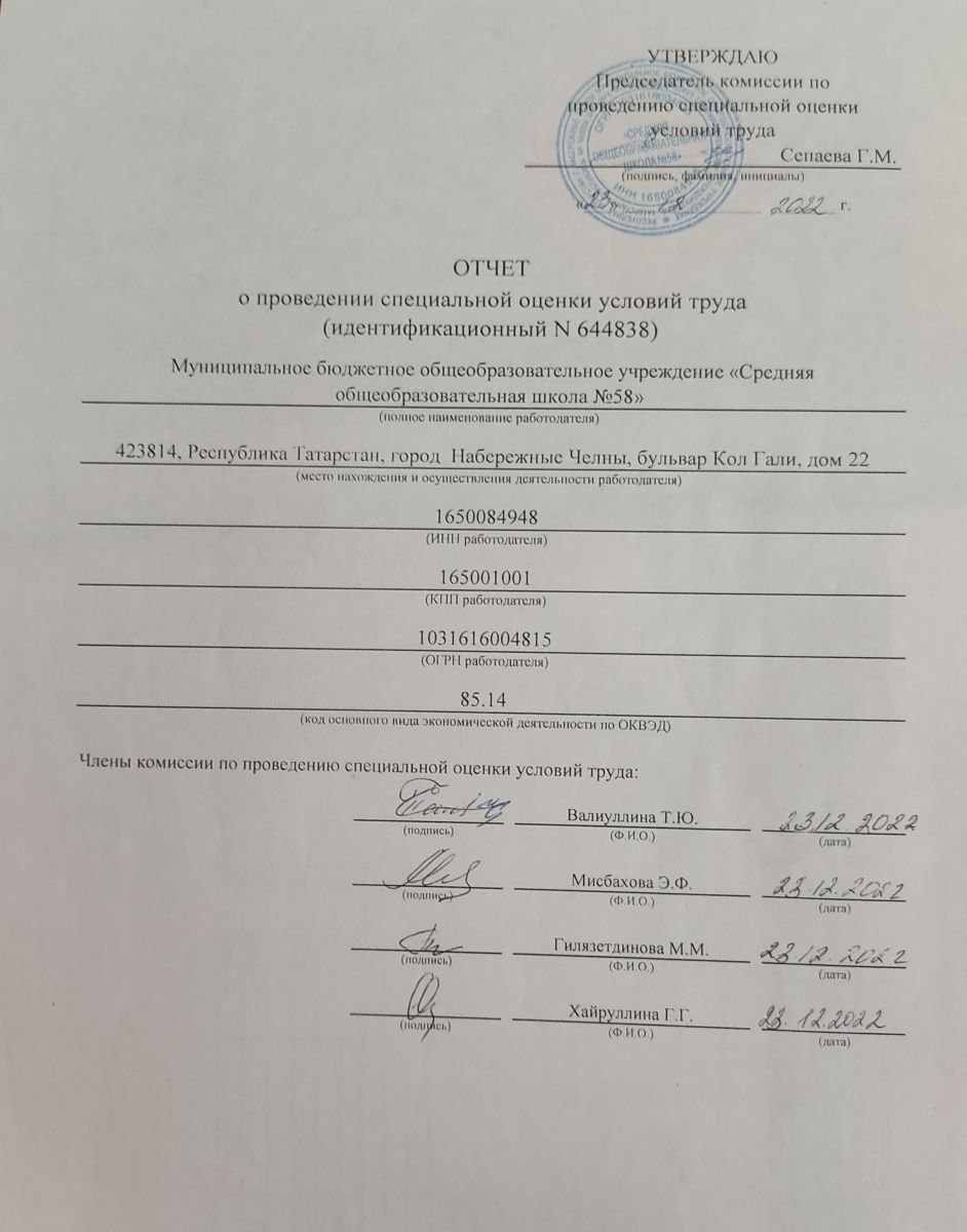 - Отчет о проведении специальной оценки условий труда от 23.12.2022