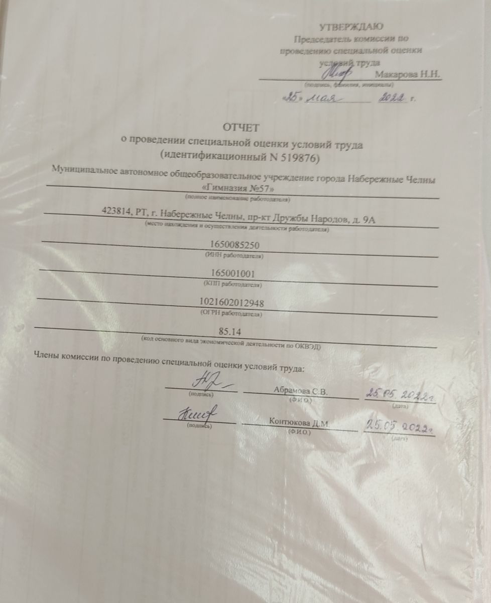 - Отчет о проведении специальной оценки условий труда от 25.05.2022