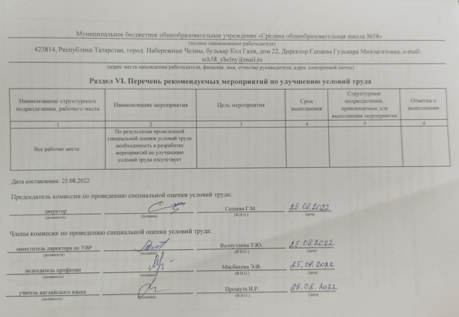 - Отчет о проведении специальной оценки условий труда от 25.08.2022