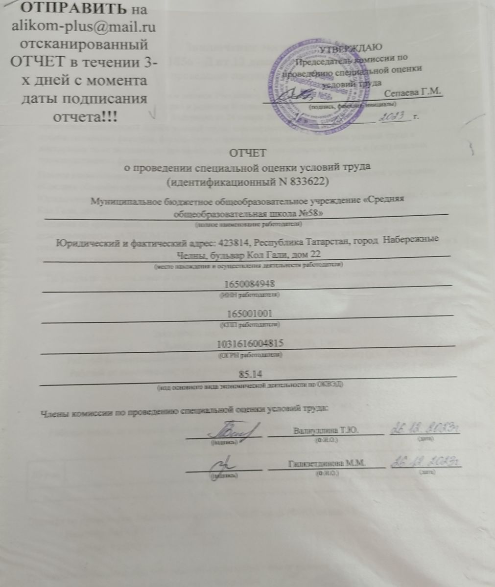 - Отчет о проведении специальной оценки условий труда от 26.12.2023