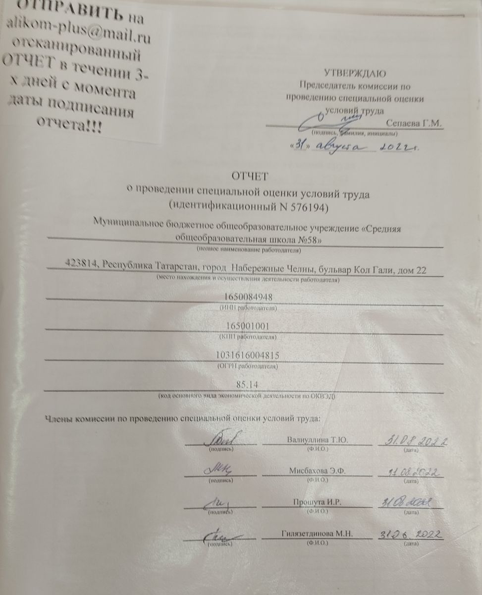 - Отчет о проведении специальной оценки условий труда от 31,08,2022