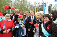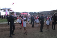 Грандиозным концертом на Майдане продолжилось празднование Дня Победы в Набережных Челнах. В трехчасовой программе зрители увидели выступление учащихся кадетских школ и военно-патриотических молодежных объединений, театрализованное представление. 12 пар нашей школы вместе с выпускниками школ города на языке танцев показали выпускной вечер 1941 года и Майский вальс в честь Великой Победы.