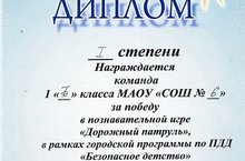 Учащиеся 1 классов приняли участие в познавательной игре «Дорожный патруль» в рамках городской программы по ПДД «Безопасное детство» на базе МАОУДОД «ЦДТ № 16 «Огниво». В соревновательной борьбе 1 место заняла команда 1Б класса (руководитель Сорокина Г.Н.). Так держать!