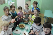 Черкасская Н.И. с учащимися 3В класса провела мастер-класс «Пирожное Картошка». Дети активно познавали кулинарное мастерство, а в конце были награждены вкусным десертом к чаю, сделанным собственными руками.