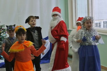 Новый год спешит к нам, и ребята веселятся на праздничных ёлках. В этом году ребят пришли поздравить герои сказки «По щучьему велению» - Емеля, Царь и Царевна Несмеяна, белая лошадка Савраска, забавные зверушки Хрюша и Гаврюша, и конечно Дедушка Мороз со Снегурочкой.