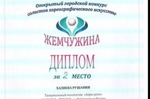 Хазиева Рушана, ученица 9Б класса, (руководитель Дунаевская О.А.) на открытом городском конкурсе солистов хореографического искусства "Жемчужина" заняла 2 место. Поздравляем!!!