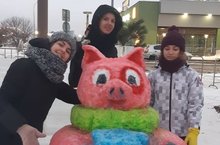 Учащиеся 11А класса вместе с педагогами школы участвовали в оформлении городской елки в поселке ЗЯБ. Общими усилиями была создана Свинка - символ наступающего 2019 года.