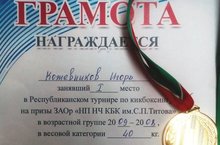Поздравляем учащегося нашей школы Кожевникова Игоря, занявшего 1 место в Республиканском турнире по кикбоксингу в возрастной группе 2008-2009 года, в весовой категории 40 кг!
