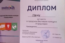 2 июня в молодёжном центре «Шатлык» состоялся финал городского Фестиваль - конкурса «Город мира». В течении года команда 9-х классов (рук. Назарова Т.Ю.) принимала активное участие во всех этапах и по итогам года заняла 1 место. Поздравляем!!!