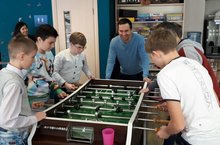 Совет отцов нашей школы принял участие в развлекательной программе с детьми. Наши папы сразились в настольный футбол с учащимися 6б класса