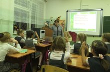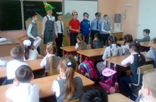 Ученики 4а класса показали творческий проект на тему " Сказка " для учеников 1-ых классов. Были показаны сказки " Теремок ", " Колобок ", " Три медведя " и др.