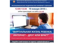 19 января 2018 года в 12 часов состоится третье заседание Республиканского родительского интернет-собрания, посвященное вопросам информационной безопасности детей.