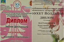 А еще Ахметзянова Диляра, тоже ученица 4А класса, награждена дипломом 2 степени в республиканском фестивале-конкурсе национального татарского искусства "Бәхет йолдызы". Поздравляем ребят, и в дальнейшем желаем творческих успехов.