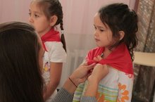 Посвящение в тимуровята воспитанников д/с "Щелкунчик" тимуровцами отряда "Дружба". -