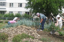Учащиеся и педагоги с большим энтузиазмом работают по благоустройству и озеленению школьной территории.