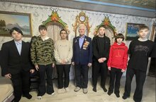 Хозяин дома рассказал ребятам свою биографию, от которой у многих на глаза наворачивались слезы. С гордостью он показал свои награды, одна из последних – медаль в честь 80-летия Великой Победы. Также он провел экскурсию по дому, показал картины, написанные им самим, поведал, как он работает в своей творческой мастерской. Обучающиеся с интересом слушали историю Кудряшова Б. П.