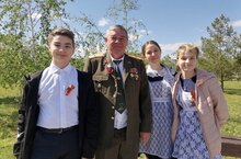 9 нчы мәктәп укучылары Җиңү парадында һәйкәлгә чәчәкләр куйдылар һәм "Тере коридор" ясап тезелделәр