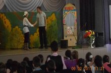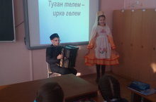 Атналыгыбыз Түбән Кама шәһәре артистлары белән очрашу белән башланып китте.Укучыларыбыз Р.Вәлиевнең “Шомбай маҗаралары” әкиятен зур кызыксыну белән карадылар, соңыннан артистлар белән истәлеккә фотога төштеләр.