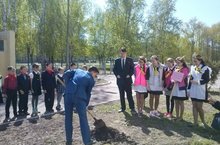 Школьный Совет учащихся посадил на участке перед школой елочку в память погибшего солдата в Афганистане - Валиева Фаниса